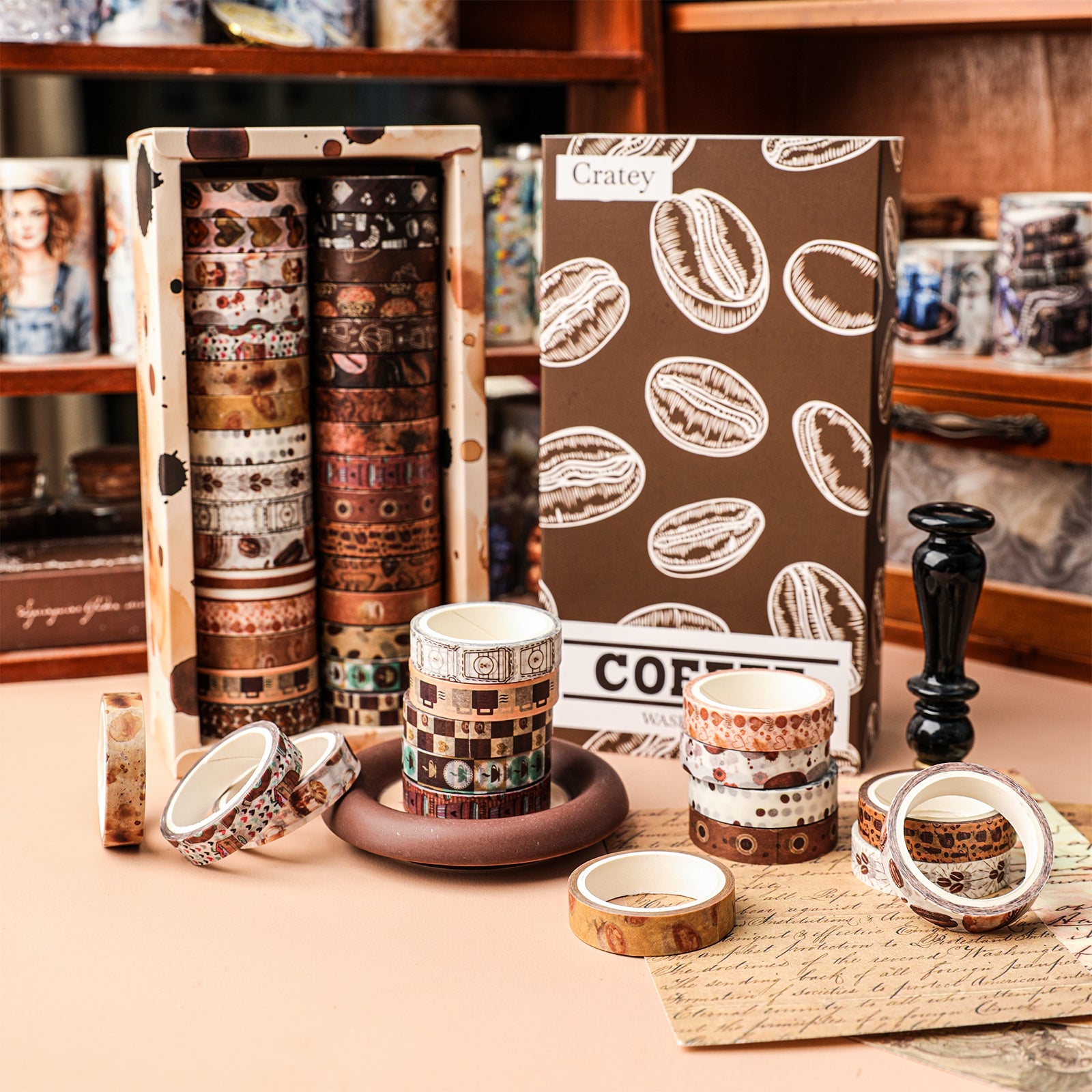 2.32 rolls of washi tape with rich styles: covering coffee-themed retro patterns, from coffee beans, coffee cups to coffee colors, a variety of styles without repetition, to meet different creative needs